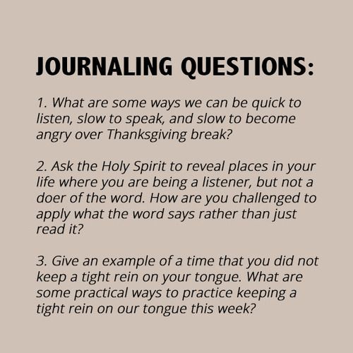 Devo: We can all agree that this is a time of social, political, and relational division. Is it even possible to navigate conversation with family and friends about the cultural climate without offending or angering one another? Let us turn our gaze to scripture to guide the way that we handle these conversations over Thanksgiving break. Simply put, James advises us to be quick to listen, slow to speak, and slow to become angry. But, you may be thinking this is much easier said than done. Theologians believe James to be one of Jesus’ brothers; however, James was a skeptic and didn’t profess Jesus as the son of God until after Jesus’s crucifixion. Can you imagine trying to manage the differing opinions between these brothers in this household? In fact, John 7: 1-4 describes a time that Jesus’s brother’s mock Him. Even still, Jesus continues to model these principles of wisdom. Isn’t it amazing that even while on the cross, in the most extreme moment of conflict, Jesus chooses his words wisely and intentionally to bring peace instead of stirring up conflict!